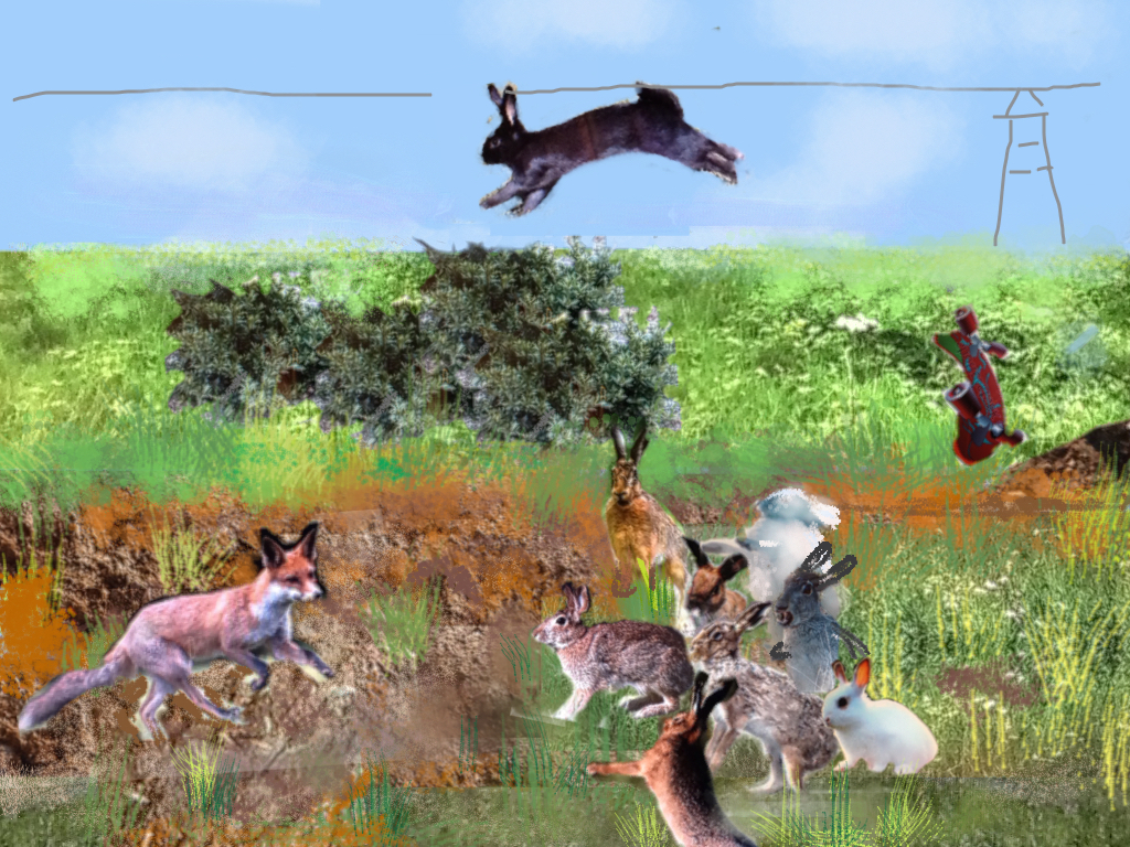 Toute une tribu de lapins et même un qui tombe du ciel!