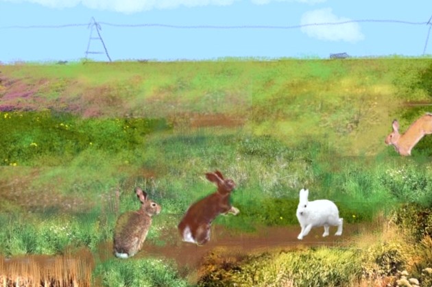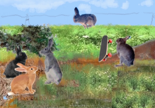 «Nous avons réalisé, tout à l’heure, que nous ne pouvions pas terminer les armatures de nos costumes avant d’avoir trouvé la manière de monter la pente. Avec nos pattes de lapin, c’est très difficile de gravir le talus sans sautiller.